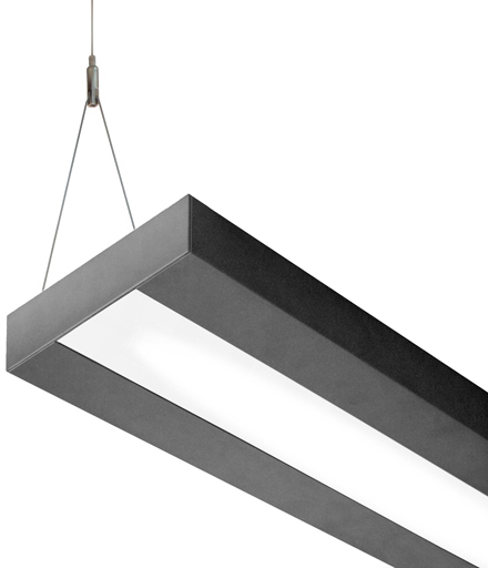 Leuchtengehäuse aus scharfkantig gezogenem Aluminiumprofil. Oberfläche pulverbeschichtet in Farbe Weiß, Schwarz oder nach RAL.