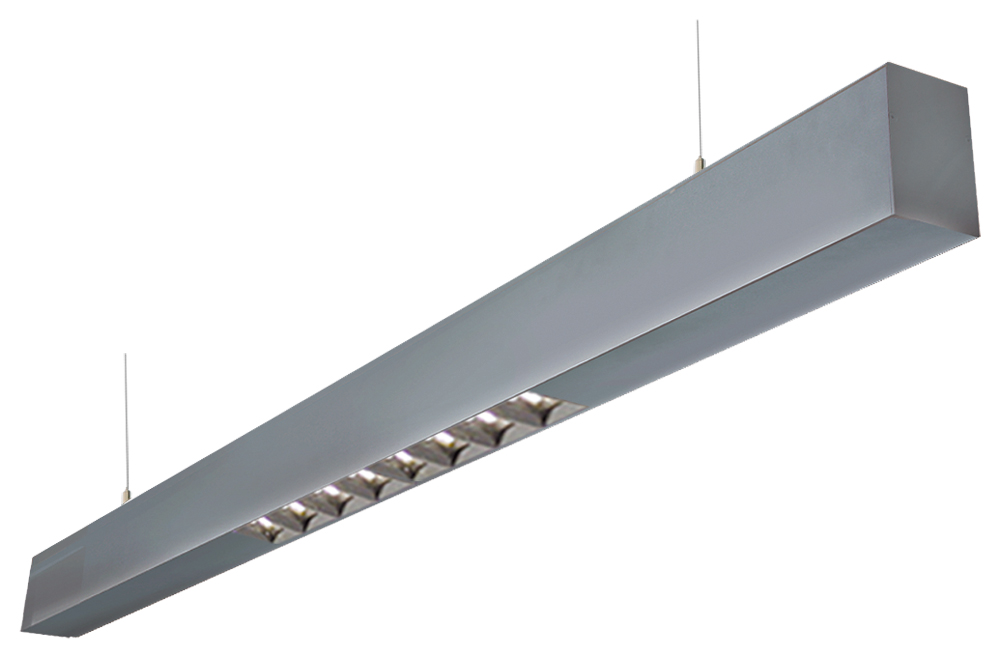 Leuchtengehäuse aus scharfkantig gezogenem Aluminiumprofil. Oberfläche pulverbeschichtet in Farbe Silber, Weiß, Schwarz oder nach RAL.